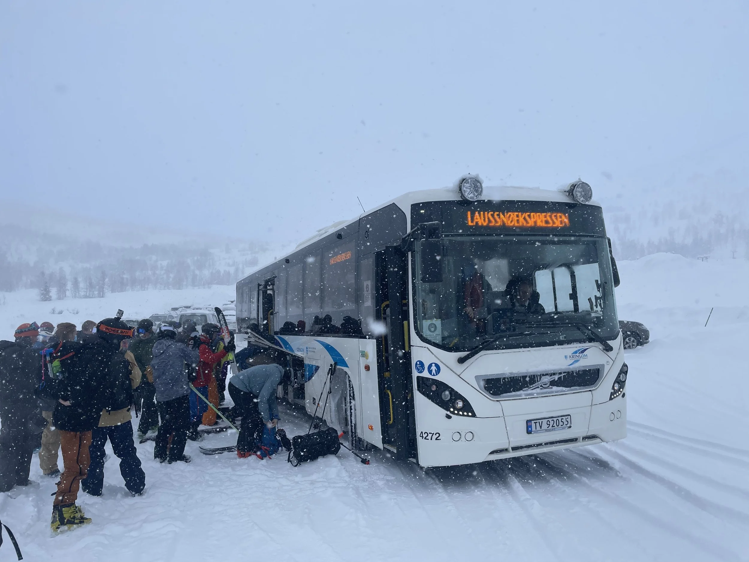 PS! Skibussen må ikkje forvekslast med Laussnøekspressen (biletet). Sistnemnde går frå Selseng og plukkar opp skikøyrarar langsmed riksveg 5 dei dagane me meiner det er grunn til å slå laussnøalarm.